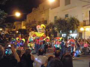 Aperto ufficialmente il Carnevale estivo della Pro Loco di Crispiano con l’inaugurazione del monumento “Terra nostra”, dello scultore Tonio Santoro. La vera e propria manifestazione, giunta al suo 11° anno di vita, da quest’anno si chiamerà Carnevale del Brigantino, in onore della sua maschera, che è divenuta quella ufficiale della provincia di Taranto. Il via ieri sera con il corteo mascherato. Oggi, dalle 21 in via Gramsci, una serata salsera con scuole di ballo della provincia. Martedì 14 alle 20,30, presso la scuola “Mancini”, appuntamento con “Mago Merlino nel mondo delle f avole”, mentre presso il bar “Car pe diem art cafè” si terrà l’ultimo appuntamento della rassegna “Car pestate”, con musica e degustazione di antipasti del ristorante “C´´era una volta” e vini. Ancora una sfilata giovedì 15, con i gruppi di Viareggio, Venezia, Kotor, Misterbianco, Arezzo, Avola, Putignano, Massafra, Alberobello,