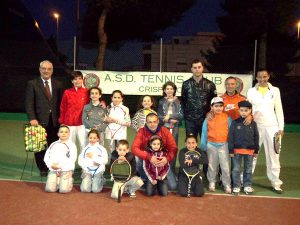 Festa dello sport, organizzata dal direttivo dell’Associazione Sportiva Dilettantistica Tennis Club Crispiano, in collaborazione con l’Assessorato allo sport del Comune di Crispiano, con gli operatori commerciali e la storica banca svizzera Vontobel, nel “Foro Italico” di Crispiano: un complesso di moderni impianti(campi di tennis e di bocce coperti e scoperti, piscina e palestra coperta, percorsi ginnici, basket e calcetto), realizzati-sottolinea il presidente del CONI Giuseppe Graniglia- grazie all’impegno di un’Amministrazione Comunale, rappresentata dall’ass. Carlo Sforza, che crede nello sport e nella sua funzione educativa, che non sia solo calcio, e alla dedizione e sacrificio di tante persone che impiegano il loro tempo libero a favore dello sport. Il presidente del Tennis, il dott. Gianluca Troisi, con i suoi collaboratori, è un esempio di capacità organizzativa e di quanto la collaborazione con le istituzioni attente, possa dare a favore dei giovani. Circa 100 iscritti (un anno fa erano appena 15), di cui 55 giovanissimi, frequentanti la scuola tennis diretta dalla maestra Valentina Imperio. Alla serata di festa hanno partecipato anche il Segretario regionale FIT Vincenzo Sferra, il Presidente provinciale Luigi Cito, l’ex giocatore di calcio del “Crispiano”(anni ’60) Alice Basilico, attualmente istruttore di tennis a Martina Franca, e come testimonial la tennista Carmen Pinto(settecentesima al mondo), i quali insieme agli altri numerosi ospiti hanno gustato i prodotti tipici locali, allietati dalla fisarmonica di Vito Santoro e dal chitarrista-cantante Franco Mirabella.