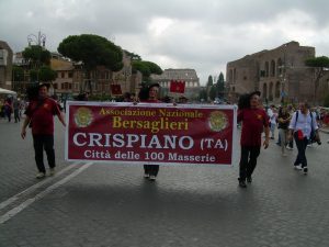 Alla manifestazione nazionale avvenuta a Roma per l’anniversario della presa di Porta Pia e di Roma capitale, ha preso parte un folto gruppo di Bersaglieri della sezione di Crispiano. Allo storico avvenimento è intervenuto – come si ricorderà- il Presidente della Repubblica Giorgio Napolitano e il Cardinale Tarcisio Bertone. La nascente associazione dei Bersaglieri crispianese, si propone lo scopo di presiedere alle cerimonie militari o civili e, di infondere culturalmente tutti i propositi per una fratellanza ed una propositiva attuazione di concordia e di pace. Il Presidente Nazionale dell’Associazione Bersaglieri Generale Benito Pochesci ha inviato al Sindaco di Crispiano Dott. Giuseppe Laddomada la richiesta finalizzata all’ottenimento in comodato d’uso della Chiesa Vecchia da adibire a “ Sacrario dei Bersaglieri” nel nome “ Madonna dell’Odigitrìa” Patrona del corpo Bersaglieri. Lo scopo di usufruire dello storico luogo che rappresenta la fondazione e le origini di Crispiano, è quello di dare testimonianza del glorioso corpo dei Bersaglieri e del culto della Madonna dell’Odigitrìa.