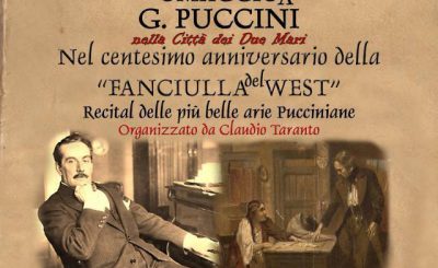 “Omaggio a G. Puccini nel Centenario della Fanciulla del West”: è l’evento che si terrà al Salone di Rappresentanza della Provincia di Taranto, il 31 gennaio prossimo. Il recital, presentato dalla giornalista televisiva Maria Liuzzi, vuol celebrare la ricorrenza storica del centenario della “Fanciulla del West”. Il soprano Nadia Divittorio,…