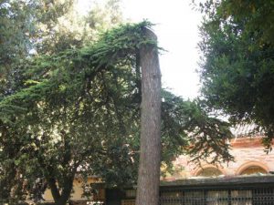La foto, che accompagna quest’articolo, è stata scattata più di una settimana fa, nel piccolo giardino pubblico del centro di Recanati, in provincia di Macerata. E’ un esempio di tutela e cura degli alberi. Si tratta di una conifera (un cedro del Libano), consistente in un tronco con due lunghi rami e foglie; malato nella chioma soprastante: non è stato abbattuto ma ne è stata conservata la parte sana e tagliata la parte secca superiore e apicale. Esteticamente non è il massimo ma nel contesto non sfigura e, sia pure “mutilato”, è ben vegeto, rigoglioso e fa ombra.