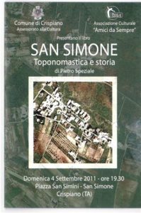 Alla presentazione, realizzata dall’Assessorato alla Cultura del Comune di Crispiano e dall’associazione culturale Amici da Sempre, interverranno, oltre all’autore, il presidente della stessa associazione Giorgio Di Presa, il prof. Cosimo Calabretti, cultore di storia e tradizioni meridionali, il sindaco di Crispiano, dott. Giuseppe Laddomada e l’assessore alla Cultura Sergio Sisto.