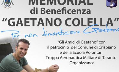Al Comune di Crispiano -Signor Sindaco di Crispiano -Assessore allo Sport -S.V.T.A.M. Taranto -Difino Gioielli -Pasticceria Ideal Bar -Bluradio Crispiano -A.S.D. Tennis Club Crispiano e, p.c. -Sig.ra Lorè Stefania -Sig. Colella Mario Oggetto: Memorial di tennis “Gaetano COLELLA” Domenica 09 Ottobre si è svolta la finale del torneo che ha…
