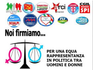 Il giorno 11 Marzo in p.za Madonna della Neve dalle ore 9.30 alle 13.00 e dalle 18.00 alle 20.00 si terrà una manifestazione tesa a raccogliere le firme per la modifica della legge elettorale Pugliese n. 02/2005 con l’introduzione del sistema elettorale della doppia preferenza una maschile ed una femminile. Nel caso questa iniziativa popolare dovesse essere accettata e varata dal consiglio Regionale cambierebbe un aspetto importantissimo. Al momento del voto si dovrà obbligatoriamente esprimere due nomi, uno maschile ed uno femminile . Un processo complesso ed importante per riportare la rappresentanza dei generi nelle sedi istituzionali e per realizzare una democrazia paritaria.