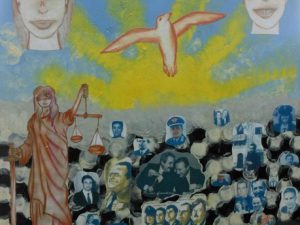 Con un quadro a tecnica mista, i venti alunni di V classe del Pon della Mancini si sono distinti per “il progetto educativo di particolare rilevanza” ricordando coloro che hanno perso la vita per difendere e garantire la legalità nel Paese. Intitolata “Sulle ali della libertà… Ricordiamoli!” – una libertà che vuole essere però impegno civile -, l’opera rappresenta da un lato la comunità schiava della mafia, dal tipico comportamento omertoso, prigioniera di una piovra che allarga sempre di più il suo potere. Dall’altro, la Giustizia e coloro che hanno creduto in essa, tanto da sacrificare la propria vita. È grazie alla Giustizia se il gabbiano apre le ali della libertà, permettendo ai cittadini di liberarsi dalla paura.