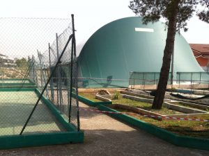 La pista di jogging è ricoperta da steppaglia alta più di un metro che potrebbe facilmente prendere fuoco visto il caldo di questi giorni;la scarpata ricoperta di pietre sulla quale in rilievo capeggiava la scritta TENNIS CLUB CRISPIANO, versa in condizioni disastrate; la tribunetta in legno ormai si riconosce a fatica nel mezzo della steppaglia; l’area recuperata dal circolo (leggasi aut. comunale)e attrezzata per ospitare i gonfiabili è ricoperta di erbacce.