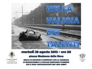 “Nella valigia dei talenti”. È questo il titolo della manifestazione che l’Assessorato alle Pari Opportunità e alle Politiche Sociali del Comune di Crispiano e l’Associazione Agorà stanno organizzando per valorizzare le capacità dei giovani concittadini che per emergere hanno dovuto lasciare casa e affetti, facendo fortuna altrove.