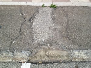 -i marciapiedi in questione sono ancora in asfalto e non come quelli in mattone presenti nella quasi totalita` del paese;