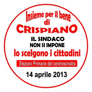 1.Le elezioni primarie per scegliere il candidato della coalizione di centrosinistra a sindaco di Crispiano per le elezioni amministrative del 2013 si terranno domenica 14 aprile 2013.