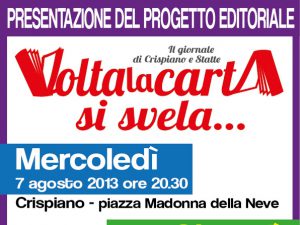 A quattro mesi di distanza dallo start del sito internet, la testata giornalistica Volta la carta si presenta al pubblico. Il nuovo giornale diretto da Vincenzo Parabita ha organizzato due serate, una a Crispiano e l’altra a Statte, le due realtà territoriali di cui si occuperà inizialmente. L’appuntamento è per mercoledì 7 agosto a Crispiano in piazza Madonna della Neve (ore 20.30) e per giovedì 8 agosto a Statte nella Biopiazza (ore 20.30).