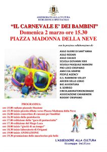 E’ un appuntamento dedicato ai più piccoli, come si evince dal titolo dell’iniziativa che recita “il carnevale è dei bambini”, quello programmato nella piazza centrale del paese dopo un breve corteo che partirà dalla Stazione di Crispiano a partire dalle ore 15.00.