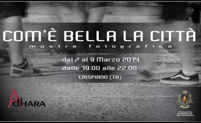 Mostra fotografica che si terrà a Crispiano (TA), presso Società Cooperativa Agricola, Oleificio Sociale Crispiano (TA) in Via Taranto 3/B SP 48, (zona Lezza). Tutto autofinanziato e organizzato dai soci dell’ASSOCIAZIONE CULTURALE ADHARA. L’Inaugurazione della mostra venerdi 7 marzo alle 19.00, con il concerto live dei LIMITE, su Giorgio Gaber.…