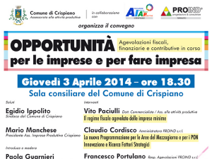 – l’ing. Claudio Cordisco, Amministratore della PROIND s.r.l., parlerà della nuova programmazione per le aree del Mezzogiorno e per i PON – innovazione e ricerca fattori strategici;