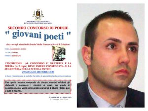 Martedì 9 Giugno 2015, alle ore 18.30, nella saletta culturale della Biblioteca Comunale in via Roma 9, a cura dell’Assessorato alla Cultura, P. Istruzione e Politiche Giovanili, si svolgerà la premiazione del secondo concorso di Poesie “Giovani Poeti”, riservato agli alunni della Scuola Media Francesco Severi di Crispiano. I giovani poeti si sono cimentati nella stesura di elaborati poetici liberi con strofe illimitate ed ispirati al tema “i luoghi del cuore”. La scelta dei vincitori a cura della commissione, composta da tre professori scolastici scelti dal Dirigente Scolastico Nicola Latorrata, dal Presidente del Consiglio Francesca Millarte e dal culture locale Giacomo Salvemini nel ruolo di presidente di giuria, è risultata ardua e impegnativa perché i giovani poeti hanno consegnato elaborati di ottima fattura. Entusiasta del risultato l’Assessore alla Cultura, P. Istruzione e Politiche Giovanili Giuseppe Delfino, che si è dichiarato soddisfatto per la riuscita della seconda edizione che ha confermato l’obiettivo dell’Amministrazione Ippolito di voler puntare sulla Cultura per cambiare Crispiano. Alla premiazione parteciperanno anche il dirigente scolastico della F. Severi dott. Nicola Latorrata, il Presidente del Consiglio del Comune di Crispiano, Francesca Millarte e il Sindaco di Crispiano Egidio Ippolito che consegneranno a tutti i giovani aspiranti poeti un premio in libri e ai vincitori una borsa di studio.