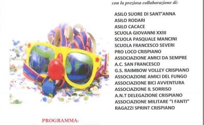L’assessorato alla Cultura del Comune di Crispiano per martedì 17 febbraio 2015, ha organizzato in collaborazione con le scuole e le associazioni del territorio, la seconda edizione del carnevale invernale, una manifestazione ludica per la riscoperta delle tradizioni. E’ un appuntamento dedicato ai più piccoli, come si evince dal titolo…