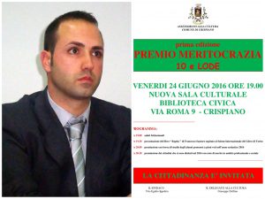 Crispiano, TA – Si terrà venerdì 24 giugno prossimo a partire dalle 19.00, presso la piazzetta della Biblioteca Civica C. Natale, la cerimonia di consegna del premio “MERITOCRAZIA 10 e LODE”, istituito per la prima volta dall’ Assessorato alla Cultura del Comune di Crispiano. Si tratta di un riconoscimento pensato per i cittadini di Crispiano o di origini crispianesi, che si sono distinti nel lavoro, nello studio, nella ricerca, nel sociale, nello sport, nell’arte o nella cultura, in Italia o all’estero, nell’anno 2016. I 25 premiati sono concittadini che contribuiscono giorno dopo giorno a portare in alto il nome del Paese delle 100 Masserie e manifestano quotidianamente l’orgoglio di appartenere alla comunità tarantina. L’iniziativa rientra in un più ampio progetto avviato in questi anni dal consigliere comunale Giuseppe Delfino, già Assessore alla Cultura, che dal primo giorno di mandato, si è prefisso di rimettere al centro del dibattito sociale la cultura, il talento, la meritocrazia e l’impegno, coinvolgendo la cittadinanza attiva e la partecipazione diretta dei cittadini e puntando tutto sulla crescita culturale delle future generazioni. Nel corso di precedenti iniziative, infatti, è stata dato lustro e sostegno a giovani crispianesi che hanno partecipato alle frequenti iniziative dell’Assessorato alla Cultura. Durante la serata è prevista la consegna delle “Pergamene della Meritocrazia”, simbolo d’impegno, passione, competenze e preparazione dei cittadini talentuosi. A conclusione della serata, a completamento della stessa, verranno consegnate ben undici borse di studio, messe in palio dall’Assessorato alla Cultura, agli alunni promossi con il massimo dei voti negli Istituti scolastici locali P. Mancini e F. Severi. Ennesimo segnale d’attenzione per la crescita culturale delle future generazioni, e il delegato alla Cultura Delfino ha dichiarato: “solo con questi ingredienti si può spazzare via un sistema che ha inflazionato il mercato, umiliato il talento e ha contribuito al degrado culturale del nostro Paese Italia”.