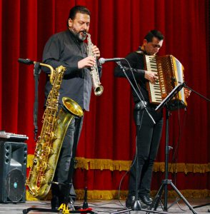 SAXACCORDION Fulvio Palese, sax Alessandro Gazza, fisarmonica Salone della Provincia TARANTO martedì 11 aprile, ore 21 Il sax tra i simboli del jazz, la fisarmonica personificazione stessa del tango. Nel duo Saxaccordion, formato da Fulvio Palese e Alessandro Gazza, di scena martedì 11 aprile (ore 21) nel Salone della Provincia di Taranto per la 73esima Stagione concertistica degli Amici della Musica «Arcangelo Speranza» (biglietti euro 15/10, info 099.730.39.72). i due strumenti s’incontrano magicamente, compiendo una sintesi perfetta attraverso un programma che esplora geografie musicali molto vicine tra loro. Il risultato del progetto, nato dall’incontro fra artisti animati dalla stessa sensibilità e da differenti modalità esecutive ed interpretative, è un intenso mélange fatto di fraseggi, tecnica e arrangiamenti, grazie al quale Saxaccordion affronta, di volta in volta, standard jazz, nuovo tango e composizioni originali. Non può, infatti, mancare Astor Piazzolla, il padre del moderno «pensiero triste che si balla» («Violentango»), così come per il duo sarà impossibile non toccare l’universo del sardonico Sonny Rollins, un mostro sacro della musica afro-americana («Valse Hot» e «Pent-up House»). Il programma che i due musicisti presentano, proponendo anche brani di propria composizione («Mar», «Frank» e «Sentimental» di Gazza, «Ttatthellu» e «Smooth idea» di Palese), annovera anche un paio di pezzi del sassofonista argentino (di origini pugliesi) Javier Girotto («Agustino», «La rural» e «Morronga la milonga»), oltre a un classico del pianista Chick Corea, l’energico «Armando’s Rhumba», sintesi di jazz, ritmi e sonorità latino-americane. Attraverso il dialogo e la sintonia di due strumenti dalle grandi possibilità espressive come il sax e la fisarmonica, i due musicisti realizzano il loro originale linguaggio musicale, con un’esecuzione fresca e godibile e al tempo stesso completa di elementi tecnici ed espressivi di grande valore. Il duo, che si è esibito anche al Petruzzelli di Bari, è stato ospite di diversi teatri e rassegne, riscontrando sempre i favori e il consenso di pubblico e critica. Musicista poliedrico, il sassofonista Fulvio Palese svolge un’intensa attività orchestrale in veste di solista con numerose orchestre, ed oltre a importanti collaborazioni cinematografiche e teatrali come compositore ed esecutore per Cristina Comencini, Giovanni Veronesi, Michele Placido, Nanni Moretti e molti altri registi, ha all’attivo diversi cd sia in qualità di sideman che a proprio nome. Dal canto suo, Alessandro Gazza ha numerose collaborazioni alle spalle e, tra gli impegni di maggior rilievo, va ricordata la partecipazione alla registrazione negli studi Rai di Milano del progetto «Mise en Abime», una produzione teatrale Franco Parenti con musiche dell’iraniano Yuval Avital dirette da Sandro Gorli e Dario Garegnani. addetto stampa Francesco Mazzotta
