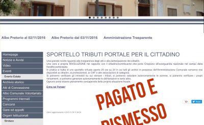 Riceviamo e pubblichiamo Il famoso “Portale del cittadino” commissionato con affidamento diretto alla Cartec di Rimini, al costo di 40mila euro, oltre IVA, è stato dismesso. A tal proposito ad una nostra interrogazione presentata a febbraio 2017, l’Assessora Pontrelli aveva risposto che “di sicuro scadendo ad agosto, per questo contratto…