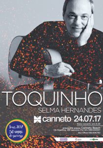 Toquinho & Selma Hernandes: il celebre chitarrista brasiliano inaugura la prima data del Sud Italia a Taranto per festeggiare i 50 anni di carriera 50 anni di successi e un tour che nel Sud Italia partirà da Taranto, precisamente dallo stabilimento del “Canneto Beach”. Toquinho sceglie la città dei due mari come prima tappa meridionale per celebrare il mezzo secolo di carriera. L’appuntamento è per lunedì 24 luglio. Ha incarnato e incarna ancora oggi la storia musicale del Brasile Antonio Pecci Filho, in arte Toquinho, che lunedì 24 luglio ianugurerà la prima data nel Sud Italia a Taranto, precisamente presso lo stabilimento del “Canneto Beach”, per festeggiare i 50 anni di carriera. Diventato popolarissimo in Italia nel 1969 suonando nel disco “La vita, amico, è l’arte dell’incontro”, realizzato da Sergio Endrigo, Vinícius de Moraes e Giuseppe Ungaretti e collaborando con Ennio Morricone nella realizzazione del disco “Per un pugno di samba” di Chico Buarque de Hollanda, è già attesissimo da fan e curiosi. Nel 1983 ha ottenuto un notevole successo con l’album “Acquarello”, scritto insieme a Maurizio Fabrizio e Guido Morra e acclamato sia in Italia che in Sudamerica dove è stato pubblicato col titolo “Aquarela” e nel quale è stata inserita una cover in brasiliano del brano “Tutta ‘n’ata storia” di Pino Daniele. Nel 1990 ha partecipato al Festival di Sanremo cantando in portoghese la canzone di Paola Turci “Ringrazio Dio”. Il titolo della canzone era “Nas asas de um violão” (Sulle ali di una chitarra). È stato anche protagonista di due tournée con Fred Bongusto, nel 1993 in Italia e nel 1996 in Brasile; nel 2003 il tour con Grazia Di Michele. Il progetto artistico di Toquinho è un omaggio alla musica brasiliana e un tributo a tutti quei grandi nomi con cui ha condiviso tanta musica e tanta poesia. La “saudade” di Tom Jobim, che quest’anno avrebbe compiuto 90 anni, e del suo grande amico e collaboratore Vinicius de Moraes, di Baden Powell, Carlos Lyra, Chico Buarque, Menescal e tanti altri, si trasformerà sul palco del Canneto in uno spettacolo dal grande fascino. Il concerto entra direttamente in quell’anima poetica della Bossa Nova e nella magia inconfondibile degli “Afro Sambas”, ripercorrendo tutti i brani che hanno fatto innamorare di Toquinho il pubblico di tutto il mondo. Toquinho, o se preferite “Toco” (come amava chiamarlo Vinicius De Moraes) con la sua voce calda e quel tocco delicato sulla chitarra sarà accompagnato dalla voce della brasiliana Selma Hernandes. Insieme incarneranno l’espressione più pura e veritiera della forza e della musica del Brasile. Prezzi Poltronissima vip: €51,50 Poltronissima: €34,50 Poltrona: €25,00 Per info chiamare lo 099 5332037 oppure scrivere a info@cannetobeach.it Le prevendite sono disponibili presso il Canneto Beach e il Box Office. Sarà possibile acquistare i biglietti anche telefonicamente chiamando lo 099 5332037 e fornendo i dati che saranno richiesti al momento dell’acquisto. Toquinho & Selma Hernandes: il celebre chitarrista brasiliano inaugura la prima data del Sud Italia a Taranto per festeggiare i 50 anni di carriera 50 anni di successi e un tour che nel Sud Italia partirà da Taranto, precisamente dallo stabilimento del “Canneto Beach”. Toquinho sceglie la città dei due mari come prima tappa meridionale per celebrare il mezzo secolo di carriera. L’appuntamento è per lunedì 24 luglio. Ha incarnato e incarna ancora oggi la storia musicale del Brasile Antonio Pecci Filho, in arte Toquinho, che lunedì 24 luglio ianugurerà la prima data nel Sud Italia a Taranto, precisamente presso lo stabilimento del “Canneto Beach”, per festeggiare i 50 anni di carriera. Diventato popolarissimo in Italia nel 1969 suonando nel disco “La vita, amico, è l’arte dell’incontro”, realizzato da Sergio Endrigo, Vinícius de Moraes e Giuseppe Ungaretti e collaborando con Ennio Morricone nella realizzazione del disco “Per un pugno di samba” di Chico Buarque de Hollanda, è già attesissimo da fan e curiosi. Nel 1983 ha ottenuto un notevole successo con l’album “Acquarello”, scritto insieme a Maurizio Fabrizio e Guido Morra e acclamato sia in Italia che in Sudamerica dove è stato pubblicato col titolo “Aquarela” e nel quale è stata inserita una cover in brasiliano del brano “Tutta ‘n’ata storia” di Pino Daniele. Nel 1990 ha partecipato al Festival di Sanremo cantando in portoghese la canzone di Paola Turci “Ringrazio Dio”. Il titolo della canzone era “Nas asas de um violão” (Sulle ali di una chitarra). È stato anche protagonista di due tournée con Fred Bongusto, nel 1993 in Italia e nel 1996 in Brasile; nel 2003 il tour con Grazia Di Michele. Il progetto artistico di Toquinho è un omaggio alla musica brasiliana e un tributo a tutti quei grandi nomi con cui ha condiviso tanta musica e tanta poesia. La “saudade” di Tom Jobim, che quest’anno avrebbe compiuto 90 anni, e del suo grande amico e collaboratore Vinicius de Moraes, di Baden Powell, Carlos Lyra, Chico Buarque, Menescal e tanti altri, si trasformerà sul palco del Canneto in uno spettacolo dal grande fascino. Il concerto entra direttamente in quell’anima poetica della Bossa Nova e nella magia inconfondibile degli “Afro Sambas”, ripercorrendo tutti i brani che hanno fatto innamorare di Toquinho il pubblico di tutto il mondo. Toquinho, o se preferite “Toco” (come amava chiamarlo Vinicius De Moraes) con la sua voce calda e quel tocco delicato sulla chitarra sarà accompagnato dalla voce della brasiliana Selma Hernandes. Insieme incarneranno l’espressione più pura e veritiera della forza e della musica del Brasile. Prezzi Poltronissima vip: €51,50 Poltronissima: €34,50 Poltrona: €25,00 Per info chiamare lo 099 5332037 oppure scrivere a info@cannetobeach.it Le prevendite sono disponibili presso il Canneto Beach e il Box Office. Sarà possibil