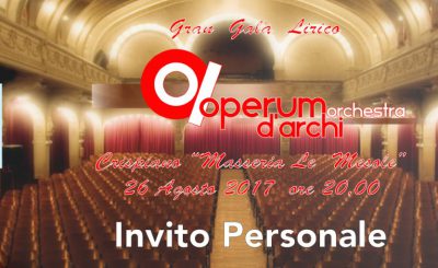 Crispiano: Un Concerto Lirico sotto le stelle Per il XXX anniversario “ Mostra delle Cento Masserie” l’Accademia musicale G. Puccini di Crispiano si appresta a celebrare un “Gran Galà Lirico” nello splendido scenario della Masseria le Mesole. Ospiti d’eccezione con l’Operum Orchestra d’Archi diretta dal M° Mariano Panico ci saranno…