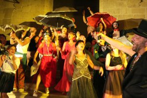 I Magazzini Teatrali VOCI NELLA NOTTE DI MEZZA ESTATE Shakespeare come non avreste mai voluto sentirlo con MICHELA CERA, ANTONELLA CHILOIRO, ANGELA DE BELLIS, SARA GENGA, VITO GIOFFREDA, ROBERTO GRANDE, DANIELA DELLE GROTTAGLIE, IVANA FERRO, MARIANGELA LINCESSO, MARINA LUPO, FRANCESCA MARSEGLIA, FEDERICO PASSARIELLO JR, ANNAMARIA PASSARO, CHICCO PASSARO, AMELIA QUARANTA, GABRIELE SALONNE, COSTANTINO SCHIAVONE, MARA SPINELLI regia FEDERICO PASSARIELLO JR e CHICCO PASSARO Torna in scena VOCI NELLA NOTTE, lo spettacolo musicale-teatrale ideato e diretto da Chicco Passaro e Federico Passariello, martedì 8 agosto, alle ore 21, nella suggestiva cornice dl Castello degli Imperiali a Francavilla Fontana. Ben 18 gli attori coinvolti in questa nuova edizione che ha visto il debutto lo scorso mese sempre a Francavilla Fontana facendo registrare l’ennesimo sold-out: Michela Cera, Antonella Chiloiro, Angela De Bellis, Sara Genga, Vito Gioffreda, Roberto Grande, Daniela Delle Grottaglie, Ivana Ferro, Mariangela Lincesso, Marina Lupo, Francesca Marseglia, Federico Passariello Jr, Annamaria Passaro, Chicco Passaro, Amelia Quaranta, Gabriele Salonne, Costantino Schiavone, Mara Spinelli si ispireranno in questa edizione a Shakespeare e al suo Sogno di mezza estate che si arricchisce di nuovi contenuti accentuando la naturale vocazione alla contaminazione di generi che ne fa uno spettacolo unico, versatile e multiforme. Una carrellata di emozioni e personaggi tra teatro, musica, commedia, tragedia, sostenuta da una architettura narrativa che lo spettatore, di volta in volta, compone a suo piacimento. Un funambolico e colorato viaggio nella vita, tra lacrime e risate, amori e tradimenti con un cast di attrici e attori che mette a nudo le nostre ansie, le nostre passioni, i nostri incubi. Prevendita telefonando allo 329.0817679, 320.0667479.
