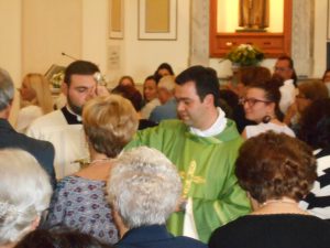 Crispiano, 25 settembre 2017 Immissione canonica del nuovo parroco nella Chiesa di San Francesco d’Assisi a Crispiano, alla presenza dell’Arcivescovo Metropolita Mons. Filippo Santoro, di numerosi sacerdoti e di autorità civili e militari. Ad accogliere don Fabio Massimillo, una chiesa gremita di fedeli, all’interno e nella piazza prospiciente la chiesa. Don Fabio, ordinato sacerdote sette anni fa, proviene dalla parrocchia del Cuore Immacolato di Maria di Taranto, dove ha svolto le funzioni di vicario parrocchiale per due anni; 31 anni, dottorando in Sacra Liturgia al Pontificio Istituto Liturgico dell’Ateneo Sant’Alselmo di Roma; è un noto compositore e direttore del coro diocesano Giovanni Paolo II, che per l’occasione ha eseguito apprezzati canti liturgici con tutti i presenti. Il nuovo Parroco subentra a don Francesco Simone, parroco di San Michele Arcangelo nella frazione di San Simone di Crispiano, che ha retto la parrocchia di San Francesco per un anno, dopo il trasferimento di don Francesco Imperiale alla parrocchia del Carmine a Martina Franca. Don Simone, ammirato per la dolcezza e la serenità portata nella comunità, continua la sua azione pastorale nella parrocchia di San Simone e a svolgere gli incarichi diocesani affidati dall’Arcivescovo, tra i quali la direzione del Museo Diocesano di Arte Sacra, molto apprezzato dai visitatori. Mons. Santoro ha invitato il neo parroco a continuare il ministero del Buon Pastore, di vivere con Cristo, di portarlo nel cuore dei fedeli, affinché essi vivano la maturità della fede, capace di manifestarsi nella vita e negli impegni quotidiani. “E’ una gioia sentire Dio nella propria vita – ha detto l’Arcivescovo – qualcuno a cui rispondere, a cui appartenere, è una gioia fidarsi dell’amore straripante di Dio”. “Una scelta, pienamente razionale – ha concluso il Presule – quella di assegnare per nove anni don Fabio alla comunità parrocchiale di San Francesco, radicata nella fede, matura e rispettosa delle disposizioni del Vescovo”. Maturità e rispetto, mostrata dai parrocchiani di San Francesco in questo anno di rotazione dei parroci, sottolineate da don Simone e dal presidente dell’Azione Cattolica Ennio Colucci. Il ringraziamento di don Fabio, visibilmente commosso, specie nel momento in cui Mons. Santoro generosamente e significativamente ha offerto la sua poltrona, è stato accolto con intenso applauso. Michele Annese