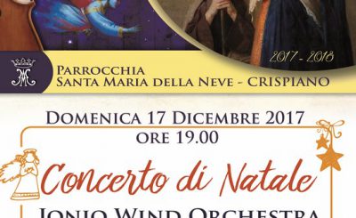 Natale in Chiesa Madre La Parrocchia di Santa Maria della Neve di Crispiano organizza per Domenica 17 Dicembre 2017 alle ore 19.00 “CONCERTO DI NATALE” Con JONIO WIND ORCHESTRA Direttore LUIGI DI FINO Voce narrante STEFANIA COLUCCI Voce narrante ANNA LEO