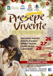Impegno massimo del Commissario dott. Mario Volpe, per ottenere finanziamenti in favore del Comune di Crispiano, notoriamente in grave difficoltà economiche e molta attenzione nei confronti di organismi culturali, sociali e turistici, impegnati ad attuare iniziative promozionali e di sostegno alle categorie meno abbienti. Recentemente sono state favorite le manifestazioni Telethon per la raccolta fondi per la cura delle distrofie muscolari e genetiche. Sono state sostenute, inoltre, con fondi ottenuti dall’Unione dei Comuni di Crispiano, Massafra e Statte, di cui Volpe è vice Presidente, l’Unitalsi per l’attività associativa e la Pro Loco per l’organizzazione della XXXII edizione del Presepe vivente, che ha registrato già una notevole partecipazione di visitatori, anche di forestieri, e si prepara ad accogliere altri visitatori per la serata finale del 6 gennaio, con inizio alle ore 18. Quest’anno il presepe vivente è stato allestito nel Centro storico in via Paisiello, dove veri artisti e appassionati, hanno riproposto l’atmosfera della Galilea con giochi di luci, mercatini, laboratori di antichi mestieri e golosità locali. Intanto al Comune c’è fiduciosa attesa per l’esito del progetto “Community library”, recentemente presentato alla Regione, che ha visto partecipare giovani professionisti e rappresentanti di associazioni locali, ma nel contempo gli uffici diretti dalla dott.ssa Francesca Muci con la collaborazione di Michele Greco, sono stati attivati dal Commissario per la presentazione di due progetti, i cui bandi sono già in pubblicazione all’albo del Comune, per l’impiego di 16 giovani, approvati dal Dipartimento della Gioventù e del Servizio Civile Nazionale – Garanzia Giovani, che abbiano compiuto e non superato il 28° anno di età (28 anni e 364 giorni), che siano iscritti al Programma “Garanzia Giovani”, che abbiano firmato il Patto di Servizio ed essere stati “presi in carico” dal CPI e/o Servizio competente: 8 unità per il progetto “L’Ambiente tra tradizione ed innovazione” e 8 per il progetto “Alla scoperta dell’ambiente tra 100 masserie“, da scegliere tra i due. La domanda di partecipazione, per uno dei due, completa di tutta la documentazione richiesta, dovrà essere presentata entro e non oltre le ore 14.00 del giorno 05/02/2018, esclusivamente secondo le modalità previste dal bando. Informazioni possono essere richieste all’ufficio Segreteria AA.GG. del Comune di Crispiano – Responsabile per il Servizio Civile Sig. Michele Greco, tel. 099.8117205.