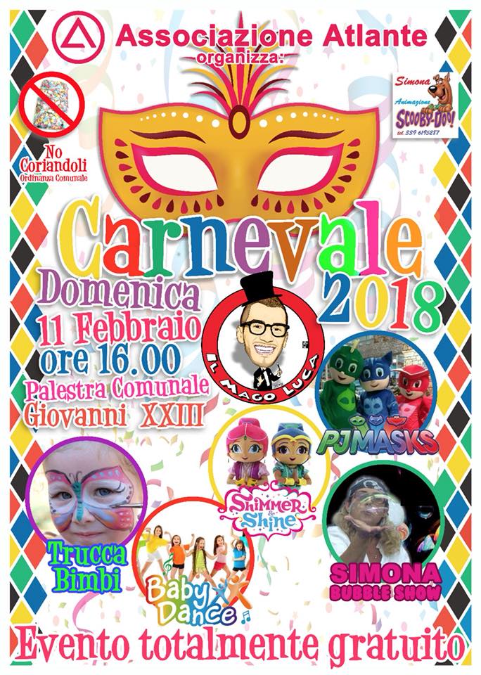 Parola del Titanio Atlante, il simpatico mattacchione che vi darà il benvenuto alla festa di Carnevale in maschera più creativa di tutta la Provincia! Domenica 11 febbraio 2018, dalle 16.00 alle 19.00, presso la Palestra Giovanni XXIII di Crispiano.