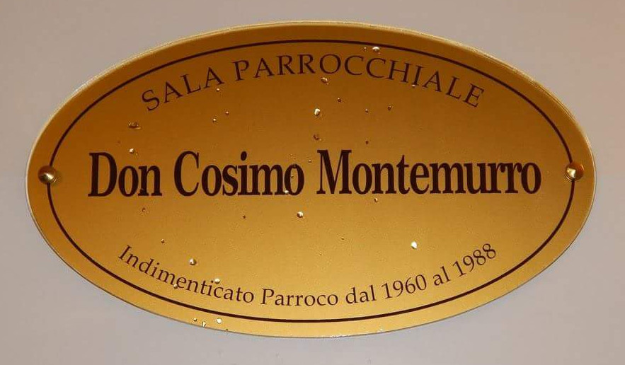 Dopo la dedicazione della sala parrocchiale e lo scoprimento della targa “Don Cosimo Montemurro – indimenticabile Parroco dal 1960 al 1988”, benedetta da don Fabio Massimillo, attuale parroco della Chiesa, nel Centro Pastorale “Santi Francesco e Chiara” è stata presentato un video contenente 100 foto che documentano la vita e le opere di don Cosimo. Testimone d’eccezione il vescovo di Trapani, nostro concittadino, mons. Pietro Maria Fragnelli, che ha ricordato l’umiltà della figura del compianto sacerdote e la simpatia riscontrata nella comunità.