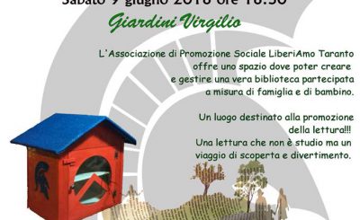 Prendiamo in mano i nostri libri e le nostre penne. Sono le nostre armi più potenti” Malala Yousafzai Sabato 9 giugno ore 18:30 presso i Giardini Virgilio sarà inaugurata la prima Spartan Little Free Library di Taranto. Casette per libri, piccoli e preziosi “scrigni” sparsi nei parchi urbani, questa…