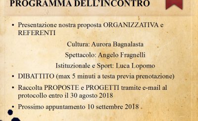 È iniziata ieri, lunedì 16 luglio 2018, la serie di incontri dedicati alla programmazione degli eventi per l’anno del Centenario di Crispiano. È stata una serata finalmente molto partecipata ed arricchita da tantissime idee e proposte da parte delle associazioni e dei cittadini presenti, nonostante il grande caldo dell’aula consiliare.…