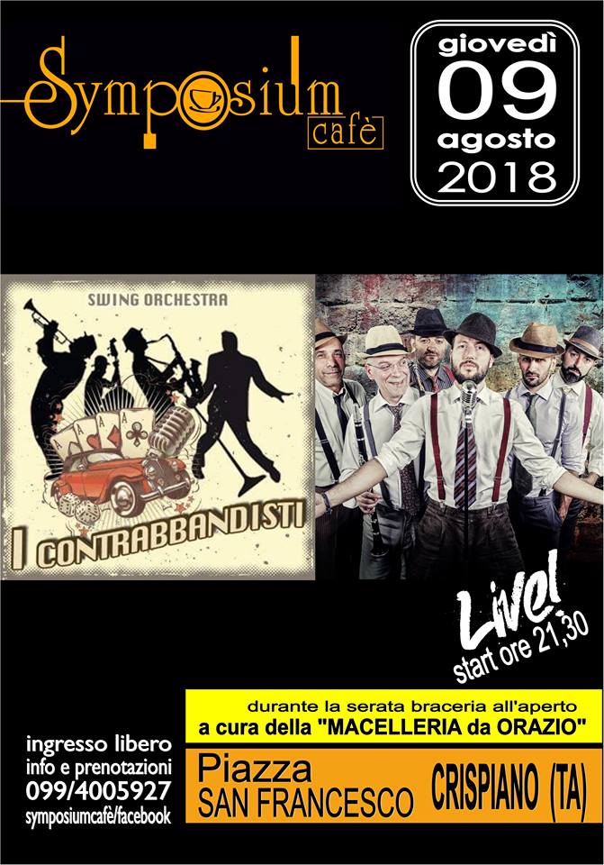 Serata a tutto swing al Symposium Cafè con la travolgente band che propone un repertorio anni ’30 e ’50. Appuntamento a giovedì 9 agosto in piazza San Francesco