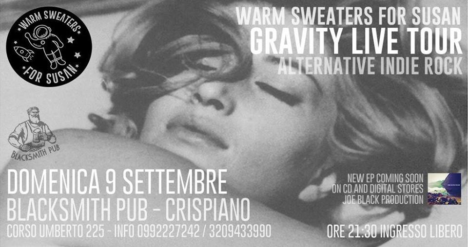 Nuovo appuntamento con la musica inedita al Blacksmith Pub di Crispiano. Domenica 9 settembre è la volta della band tarantina Warm Sweaters for Susan, il cui sound riconduce alle produzioni inglesi degli anni ottanta e novanta, fondendo un mix sonoro intenso e di straordinaria personalità.