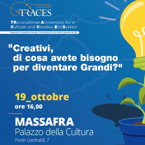 Inizio lavori: h. 16,30: presentazione del progetto “TRACES – TRansnational Accelerator for a Cultural and Creative EcoSystem” e dei dati sullo stato delle imprese culturali e creative nella provincia di Taranto