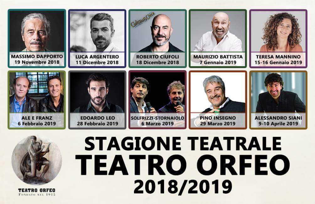 Un cartellone fresco, divertente e con nomi prestigiosi che fanno presagire – per molte date – il tutto esaurito. Le intenzioni di Adriano e Luciano Di Giorgio, l’uno proprietario e l’altro gestore dello storico teatro tarantino “Orfeo”, sono chiare e per il terzo anno consecutivo i due imprenditori hanno deciso di realizzare una stagione teatrale memorabile.