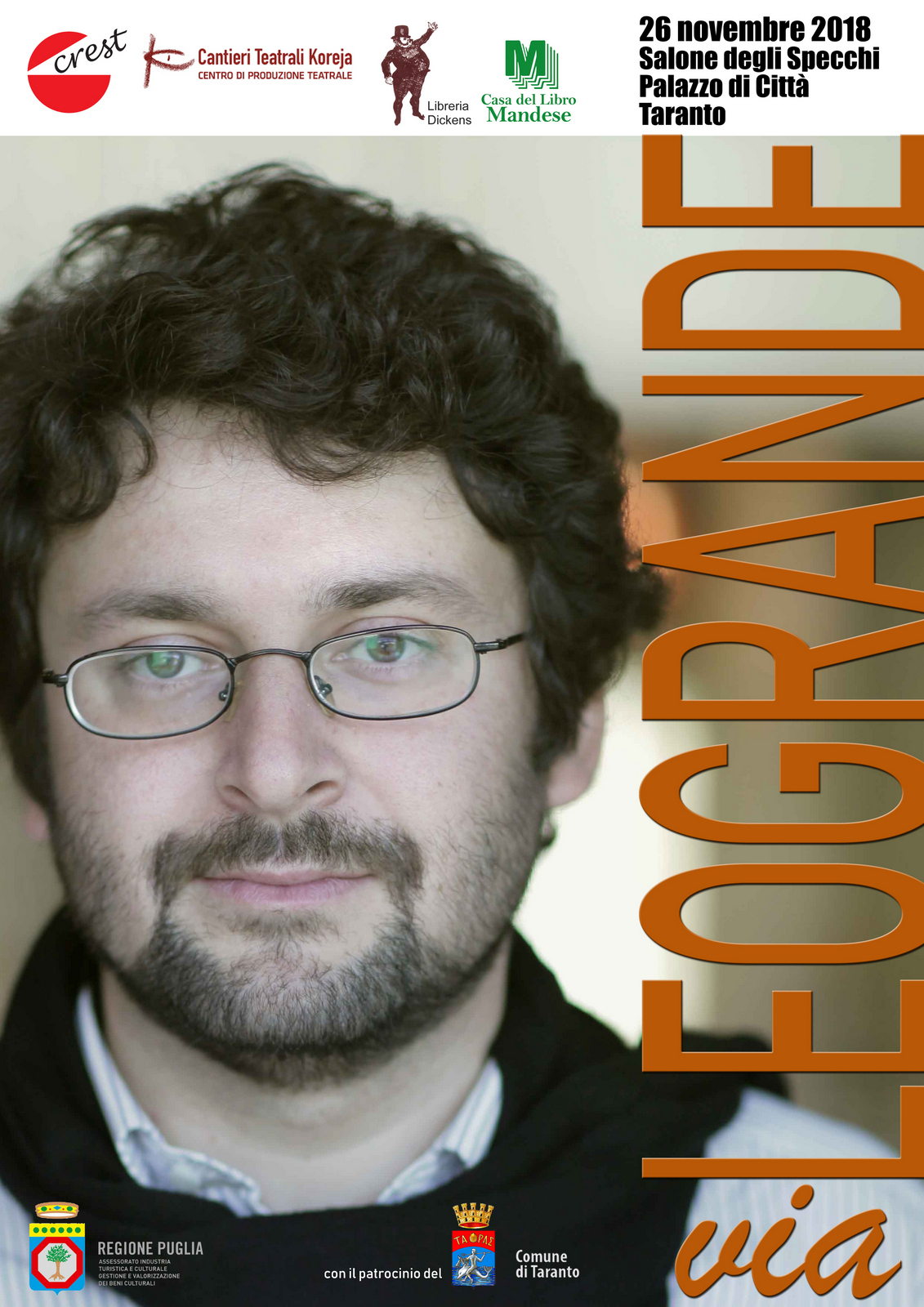 Lunedì 26 novembre, alle ore 11.30 nel Salone degli Specchi di Palazzo di Città, in piazza Municipio 1 a Taranto, avrà luogo la conferenza stampa di presentazione del progetto Via Leogrande, un percorso di conoscenza degli scritti, degli studi e dell’artista Alessandro da promuovere nella terra in cui è nato ed ha nutrito le sue prime battaglie politiche e sociali divenute esordi letterari di pregio.