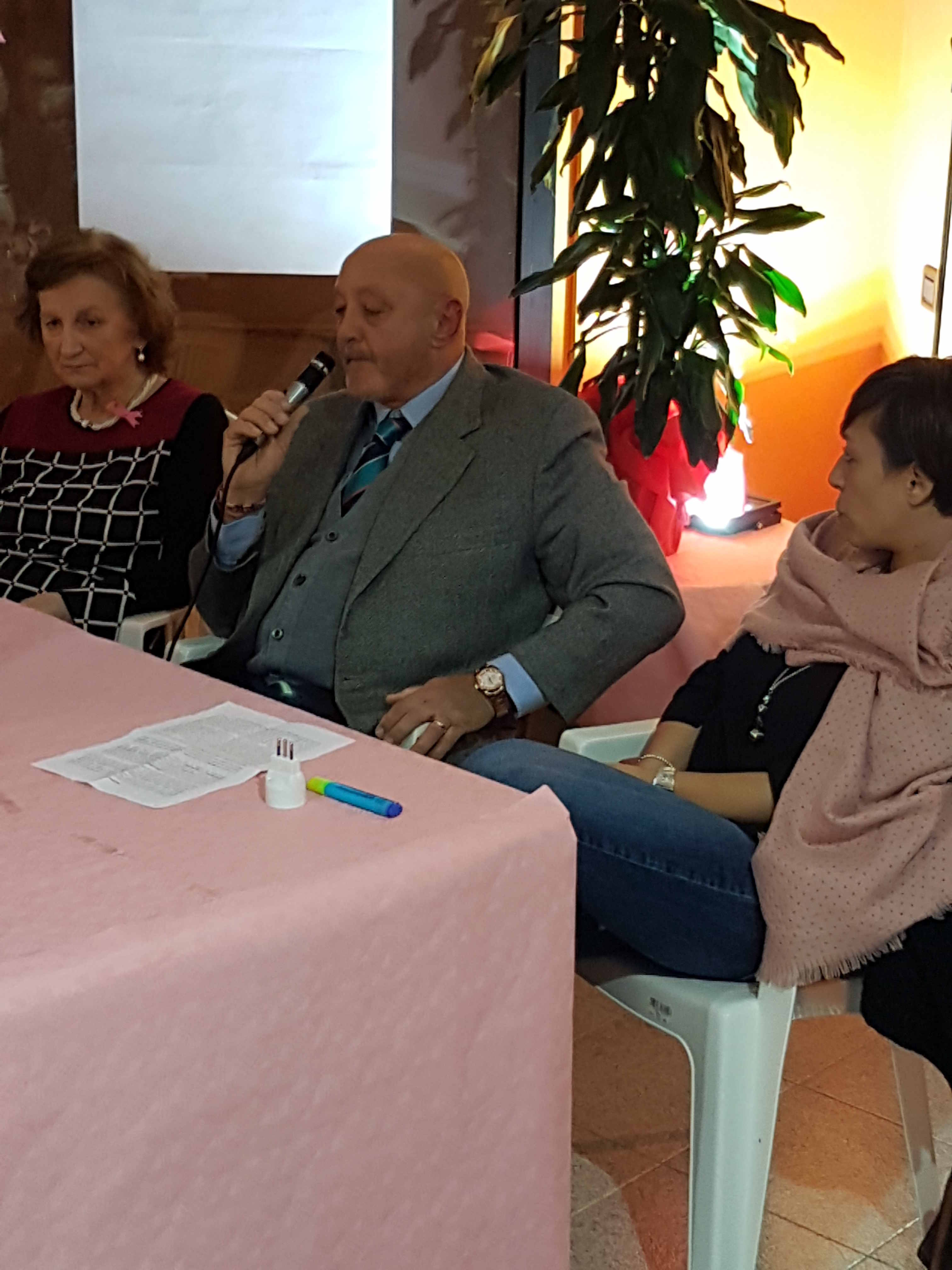 Oggi che statisticamente la vita si è allungata, occorre garantire un corretto miglioramento del proprio stile e assicurare “più vita agli anni”. Pertanto – conclude Laddomada – ringrazio, a nome di tutti gli iscritti, il C.M.C. per il sostegno e il dott. Capozza per la collaborazione che ha avviato con noi”. E’ seguita la dotta relazione del dott. Capozza, il quale ha esordito salutando il suo maestro dott. Pasquale Bruno, ringraziando i numerosi presenti e ricordando la memoria di Uccio Capani e Enzo Rinaldi (zio Enzo), amici degli anni di inizio carriera a Crispiano. Ha poi affermato che il tumore è la patologia del secolo, che può colpire a qualsiasi età; che c’è senz’altro una predisposizione famigliare, ma è necessaria la prevenzione, che passa attraverso la conoscenza e l’attuazione di un corretto stile di vita, per evitare che la patologia degeneri e poi si affronti il difficile viaggio della speranza, non condiviso da lui. “Veronesi ha detto che abbiamo sconfitto il cancro, io non voglio smentirlo, ma ciò è possibile solo se le cose vengono fatte per bene e da persone esperte”. Intanto bisogna ricordare che i più comuni fattori di rischio sono: alcol, fumo, vita sedentaria, obesità, eccesso di insulina, pillola anticoncezionale, prima mestruazione al di sotto dei 12 anni, assenza di gravidanza, alimentazione scorretta (preferibile quella mediterranea). E’ utile anche correggere alcune abitudini: niente cosmetici, deodoranti, profumi, basta un semplice sapone neutro per lavarsi; la biancheria intima da preferirsi è in cotone bianco. Ma ovviamente “il troppo stroppia”, quindi se ci si alimenta con moderazione, ci si può concedere sempre qualche soddisfazione gastronomica, o qualche capo di abbigliamento intimo più colorato e civettuolo. E’ molto utile, dice il dott. Capozza, l’attività fisica, non necessariamente in palestra, è molto salutare un giro in bicicletta all’aria aperta, o una piacevole passeggiata: 5000 passi al giorno sono sufficienti. Prevenzione è anche rapporto di fiducia col medico. Già intorno ai 30 anni, la donna deve fare una visita senologica, prima di avvertire qualche sintomo. Spetta al senologo correggere lo stile di vita della paziente, dando semplici consigli, e indirizzandola verso una mammografia annuale e, quando è necessario, ricorrere alla risonanza magnetica e alla microistologia, per conoscere il tipo di displasia da cui la donna è stata colpita. Avuta la diagnosi, senologo e oncologo devono insieme studiare il caso e, se necessario, procedere con l’intervento. Il dott. Capozza si è dichiarato contrario alla mutilazione completa della mammella. Un “medico esperto”, che si impegna a “fare le cose per bene”, si avvale dell’evoluzione della terapia chirurgica e procede con la quadrantectomia, cioè il taglio interessa solo un quadrante della mammella, e attua subito la ricostituzione del seno. “Personalmente – ha detto il dottore – ritengo di ridurre il danno il meno possibile, al fine di non mortificare la donna, colpita nel suo io due volte: la malattia e la mutilazione. Ritengo che in questi casi il medico non debba trincerarsi dietro un camice bianco, ma debba seguire h24 la propria paziente, instaurare con lei un rapporto di fiducia e di amicizia, che vada al di là della sala operatoria e della struttura ospedaliera, perché la donna deve capire che nulla è cambiato nella sua vita famigliare e di coppia. E’ necessaria quindi la vicinanza dei medici, anche nel cammino di ripresa, affinché la terapia post-operatoria sia seguita scrupolosamente. La serietà e la sensibilità del comportamento del personale medico, la prevenzione, il tempestivo intervento hanno portato all’85% la percentuale della sopravvivenza post-operatoria”. Il dott. Capozza ritiene però necessario anche un supporto psicologico per la donna e per le persone a lei care.