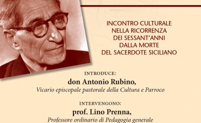Don Luigi Sturzo e il popolarismo venerdì 17 maggio 2019 – ore 18,30 Auditorium San Roberto Bellarmino – Corso Italia – Taranto INCONTRO CULTURALE NELLA RICORRENZA DEI SESSANT’ANNI DALLA MORTE DEL SACERDOTE SICILIANO introduce: don Antonio Rubino, Vicario episcopale pastorale della Cultura e Parroco intervengono: prof. Lino Prenna, Professore ordinario…