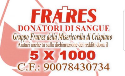 Carissimi Soci e Simpatizzanti del Gruppo Fratres della Misericordia di Crispiano, IL GRUPPO INFORMA – PROGRAMMA Maggio e Giugno 2019: – Martedì 7 maggio presso la Parrocchia di San Michele Arcangelo, in San Simone, serata dedicata alla raccolta di donazioni sangue; – Domenica 26 maggio con gli amici dei Lions…