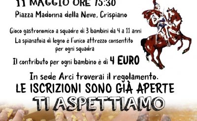 LA PASTICCIATA 11 MAGGIO ORE 15,30 – PIAZZA MADONNA DELLA NEVE Anche quest’anno continuiamo nella storica tradizione della Pasticciata!! La nostra gara gastronomica a squadre risale al 1981, quando per la prima volta ci siamo riuniti in Piazza Madonna della Neve a Crispiano per preparare dei buonissimi dolci fatti in…