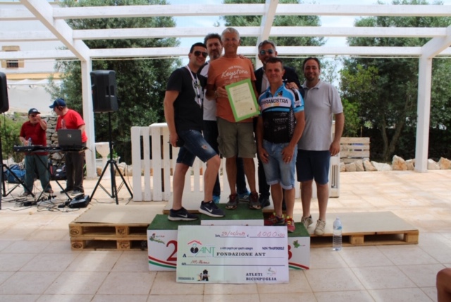 Il primo classificato ASSOLUTO, arrivato per primo al traguardo, nello splendido scenario della masseria Quis Ut Deus location che ha ospitato la manifestazione, l’atleta NICOLA Convertino della ASD Città degli Imperiali, al secondo posto Stefano Lisi della Chialà Cycling Locorotondo, il terzo Eugenio Marra della Rh bike Palagiano…..tutti nell’ora e quarantanove minuti distanziati da pochi secondi tra di loro.