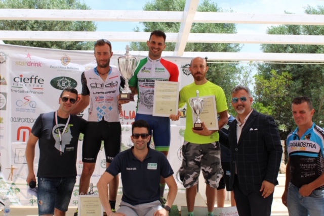 Il primo classificato ASSOLUTO, arrivato per primo al traguardo, nello splendido scenario della masseria Quis Ut Deus location che ha ospitato la manifestazione, l’atleta NICOLA Convertino della ASD Città degli Imperiali, al secondo posto Stefano Lisi della Chialà Cycling Locorotondo, il terzo Eugenio Marra della Rh bike Palagiano…..tutti nell’ora e quarantanove minuti distanziati da pochi secondi tra di loro.