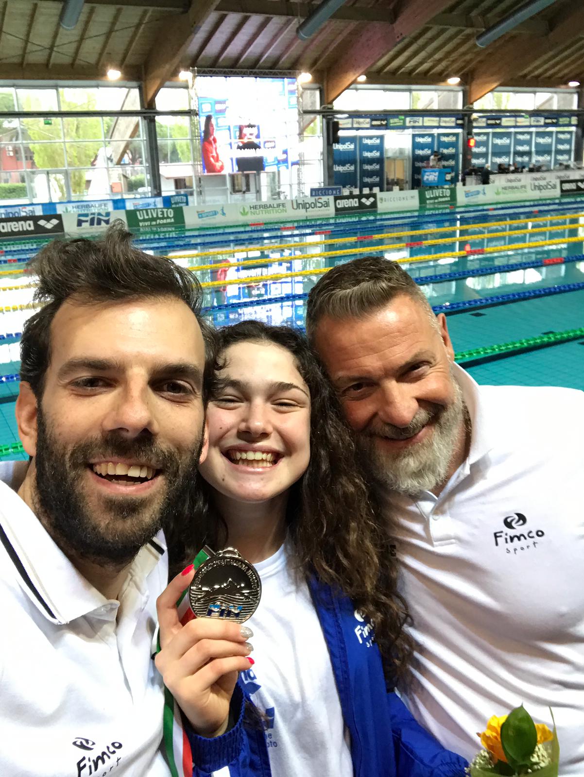 Due giorni dopo conquistò anche la medaglia d’argento nella staffetta 4×100 mista femminile insieme a Gaetani, Biasibetti e Cocconcelli, facendo segnare il tempo di 4’05″66. Sempre a Kazan ha stabilito il nuovo record italiano ragazze nei 100 rana con il tempo di 1’08″22.