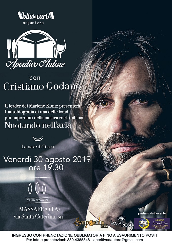 Aperitivo d’Autore si tinge di rock. Venerdì 30 agosto (ore 19.30) sarà ospite del format di Volta la carta Cristiano Godano: cantante, chitarrista, autore, fondatore e anima dei Marlene Kuntz, una delle più importanti band della musica rock italiana. L’evento si terrà in quella meraviglia bucolica che è Casina Trovanza, a Massafra.