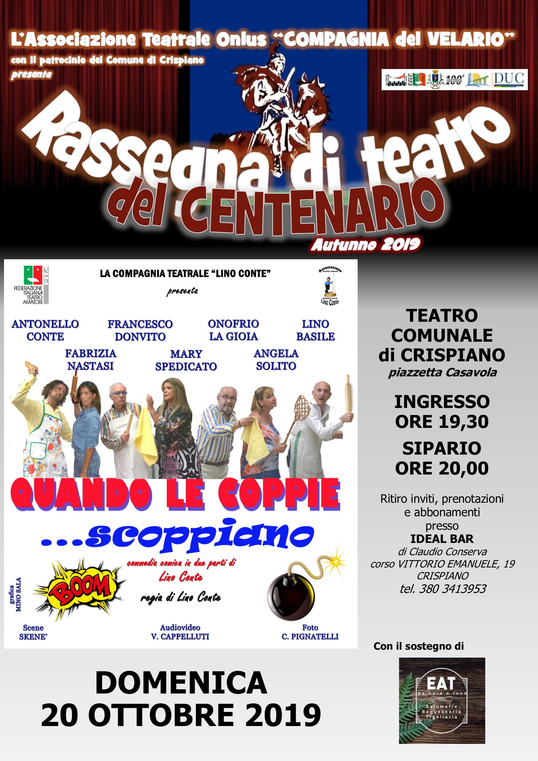 “Quando le coppie… scoppiano” della Compagnia Teatrale LINO CONTE di Taranto è il lavoro che verrà presentato domenica 20 ottobre alle 19,30 presso il Teatro comunale di Crispiano.