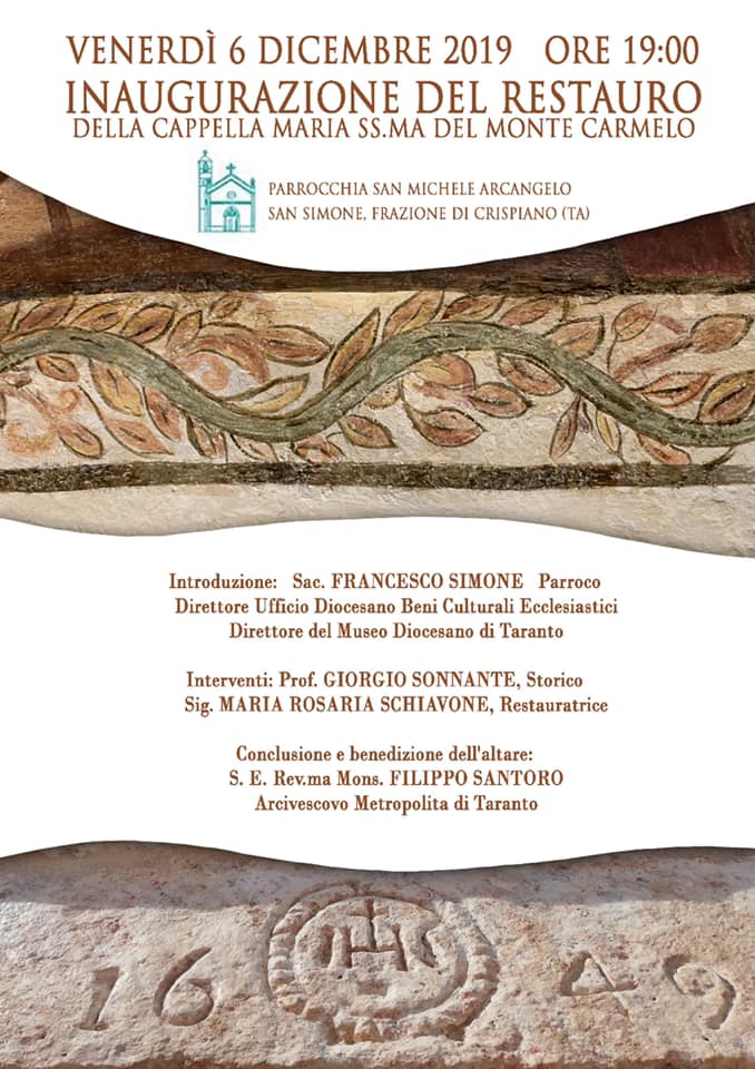 Interventi: Prof. GIORGIO SONNANTE, Storico Sig. MARIA ROSARIA SCHIAVONE, Restauratrice