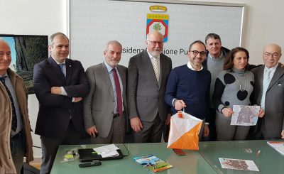 (Da sinistra: Sigismondo Mangialardi, Gabriele Viale, Ennio Sannicandro, Sergio Anesi, Raffaele Piemontesi,Nicolino Sciscio, Carmela Strizzi e Michele Barbone). BARI: E’ stata presentata questa mattina a Bari, presso la Presidenza delle Regione Puglia l’assegnazione dei Campionati Mondiali Master di Orienteering 2022 che si terranno in Gargano. Ancora da definire con esattezza le…