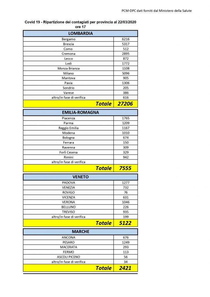 BOLLETTINO EPIDEMIOLOGICO 22/03/2020