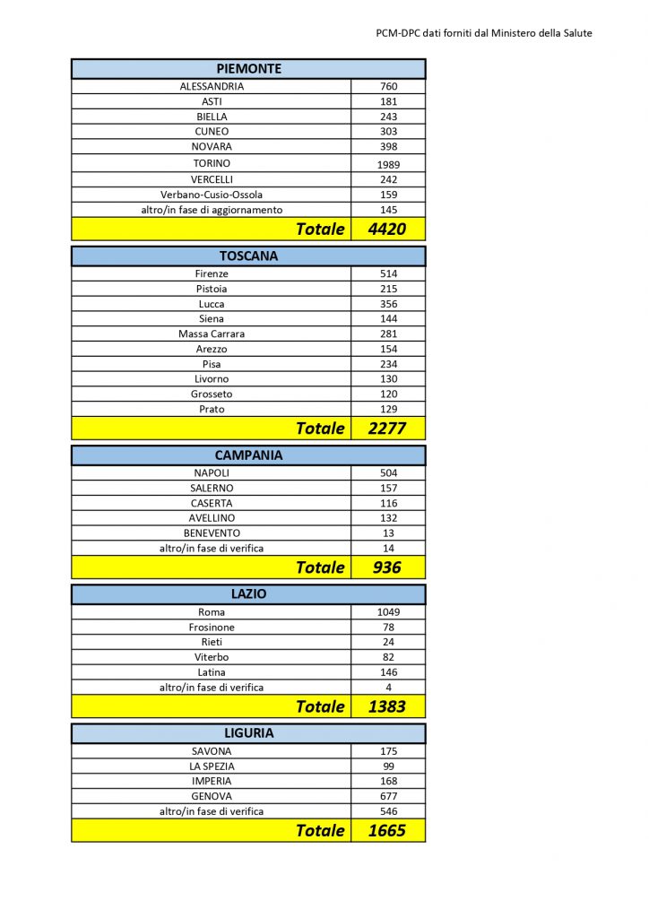 5 per i quali è in corso l’attribuzione della relativa provincia.